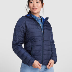 · High neck and foldable hood with adjustable drawcord.