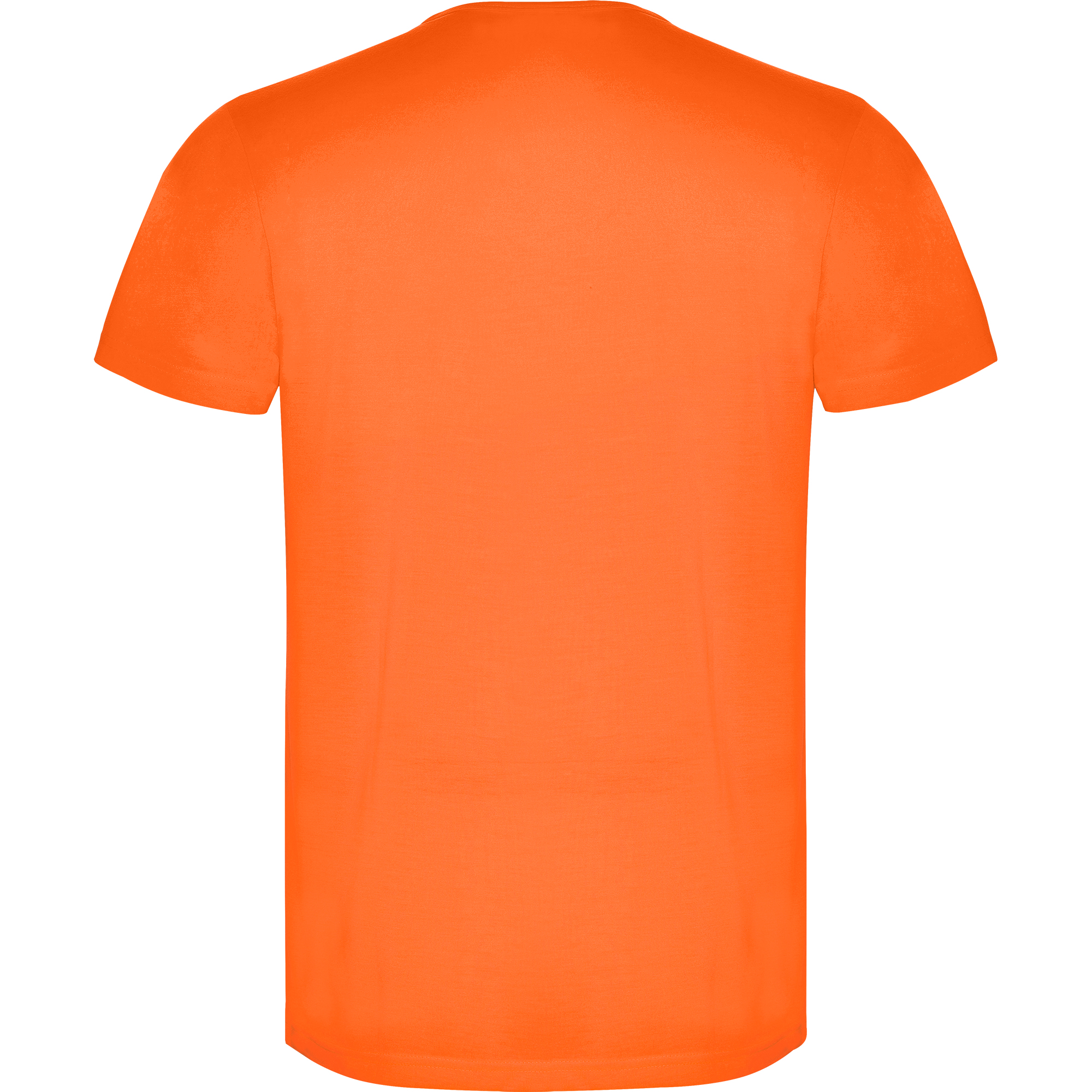 Short-sleeve t-shirt in fluor colours. Crew neck and inner covered seams. Made of polyester fabric with cotton touch.