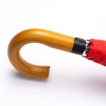 An umbrella made of RPET (recycled polyester) with 190T pongee fabric and a natural wood handle is an elegant and sustainable option to protect you from the rain. The pongee 190T fabric is durable and water-repellent, providing good protection against the rain. The natural wooden handle gives a touch of style and warmth to the umbrella, providing a natural and comfortable feeling when holding it. In addition, the umbrella has an automatic opening button for easy use and a Velcro closure for safe storage.