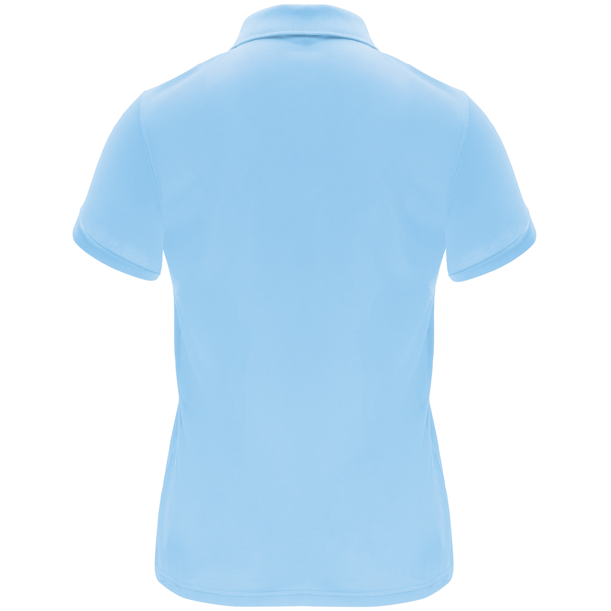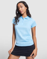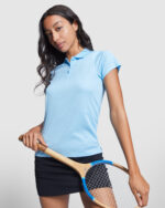 Short-sleeve technical polo shirt for women. Knit collar with three-button placket. Fitted cut.