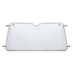 Ideálna veľká slnečná clona pre nákladné autá a dodávky. Obe strany v bublinkovom hliníku a čiernom lemovaní. Vrátane kovových očiek s prísavkami a elastických popruhov na skladanie.